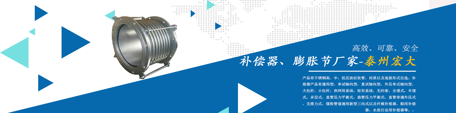 泰州市宏大機械設備有限公司是一個企業(yè)內(nèi)部管理嚴謹,工作作風穩(wěn)健,職工素質(zhì)水平較高,經(jīng)濟實力雄厚,產(chǎn)品質(zhì)量放心,外部形象良好的企業(yè)。本公司專業(yè)從事補償器廠家,膨脹節(jié)廠家,膨脹節(jié)補償器,其中有不銹鋼高,中,低壓波紋軟管,材質(zhì)以及連接形式任選。補償器產(chǎn)品有通用型,單試軸向型,復試軸向型,外壓單式軸向型,大拉桿,小拉桿,熱網(wǎng)用系統(tǒng),矩形系統(tǒng),無約束,全埋式,半埋式,多層式,直管壓力平衡式,曲管壓力平衡…...